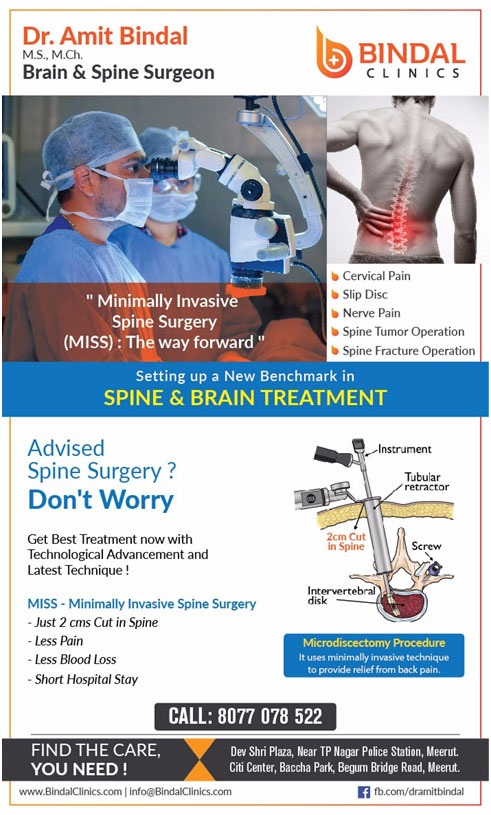 Seek immediate help for treatment of stenosis of spine, surgery for slip disc, endoscopic surgery for slip disc from the top Spine surgeon in Delhi and Meerut, Dr. Amit Bindal at Bindal Brain and Spine Clinics, Meerut, who has more than 15 years of expertise in spine surgery at affordable prices and best possible outcome.